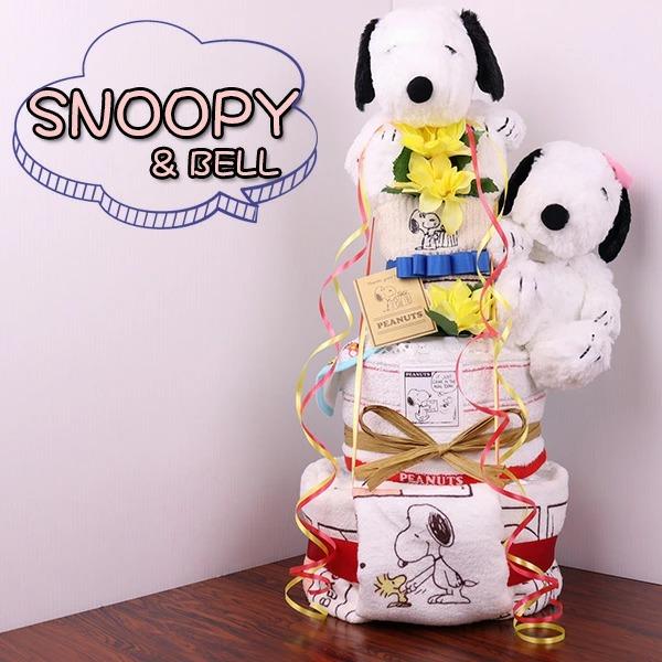 おむつケーキ 出産祝い スヌーピー 名入れ パンパース 男の子 女の子 ギフト かわいい おしゃれ バスタオル おむつケーキ スヌーピー 出産祝い 名入れ 男の子 女の子 かわいい おしゃれ 送料無料 即日発送 オムツケーキ パンパース Peanuts ダイパーケーキ Snoopy 4段